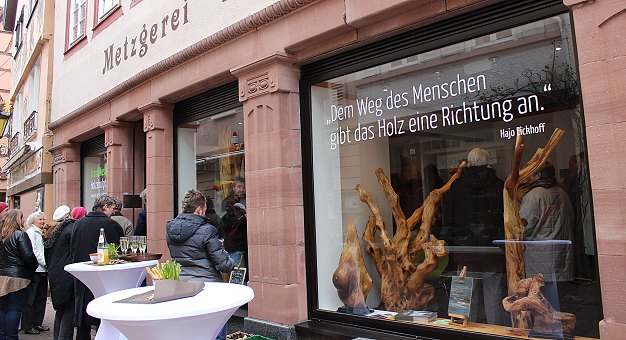 In den Räumen einer ehemaligen Metzgerei sind nun Holzskulpturen zu sehen, die Musiol in seinem "Atelier am Fluss" im Krösselbachweg gegenüber Lindach hergestellt hat. Das Interesse an der Vernissage um 11 Uhr war so groß, dass in dem Ausstellungsraum nicht alle Besucher Platz fanden.