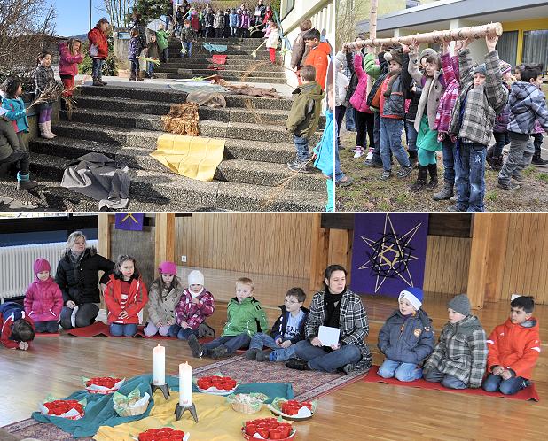 Kinder unterwegs auf dem Weg mit Jesus (Fotos: privat)(bro) (squ) Am 15. und 18. März verwandelten sich der Kindergarten Arche Noah und das Steigezentrum zu einem Schauplatz des Weges Jesu durch seine letzten Tage.