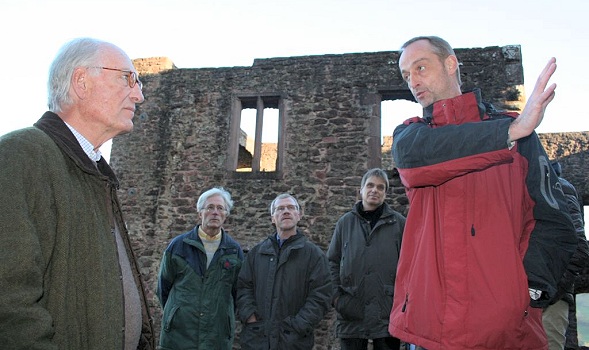 Die Beiratsmitglieder der Unteren Denkmalschutzbehörde des Odenwaldkreises haben die Arbeiten an der Burg in ihr Besucherprogramm aufgenommen, nicht zuletzt um die ehrenamtliche Arbeit an der ruinösen Substanz der Burg und die lobenswerten Instandhaltungsmaßnahmen zu würdigen. Bei einem Rundgang mit den Beiratsmitgliedern erklärte Tilly die von ihm in den zurückliegenden Jahren durchgeführte Arbeit.