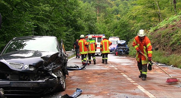 2012 wurden auf den Straßen der Stadt Eberbach 429 (383), der Gemeinde Schönbrunn 56 (50) und der Gemeinde Heddesbach 10 (6), zusammen 495 (439) Verkehrsunfälle aufgenommen. 62 (51) Personen wurden dabei verletzt, davon kamen 46 (38) mit ambulanter Behandlung davon und 15 (13) mussten stationär in einem Krankenhaus aufgenommen werden. Mit 48 (46) Verkehrsunfällen mit Personenschaden ist die Anzahl der Unfälle mit Verletzten nahezu gleich (Vorjahreszahlen in Klammern). Einziger tödlicher Unfall in 2012 war der eines 17-jährigen Leichtkraftradfahrer am 4. Juli auf der Landesstraße 595 zwischen Schönbrunn und Allemühl (wir berichteten).