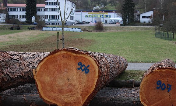 Submissionsergebnis etwas schwächer als im Vorjahr (Foto: Hubert Richter)(cr) In der Au in Eberbach lagerten seit Dezember vergangenen Jahres Baumstämme, die bei der alljährlichen "Wertholzsubmission" zum Kauf angeboten wurden. Seit Mitte Februar stehen die neuen Besitzer fest, die die Hölzer inzwischen abholen ließen.