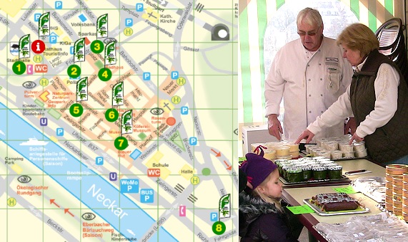 Bärlauch-Aktive laden zum Sportevent - Start und Ziel auf dem Lindenplatz Links: Die grünen Punkte mit den Nummern zeigen die Stempelstationen beim heutigen Bärlauchlauf. Rechts: Werner Darmstädter vom Gasthaus "Grüner Baum" ist einer der Bärlauch-Aktiven. (Repro/Foto: Claudia Richter)(hr) Im Rahmen der "Eberbacher Bärlauchtage" findet heute erstmals ein Sportevent statt: Um 14 Uhr fällt am Lindenplatz der Startschuss zum 1. Eberbacher Bärlauchlauf. Wer sich lieber gemächlicher bewegt, kann alternativ an einer geführten Wanderung teilnehmen.
