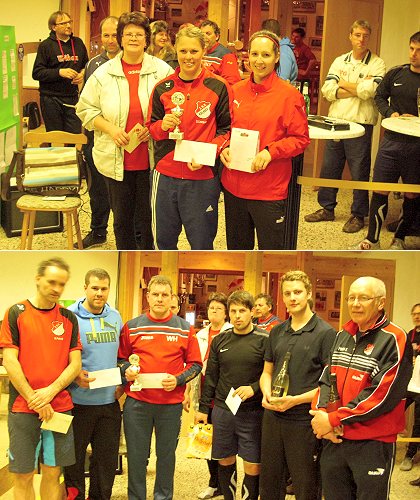 Eine gelungene Veranstaltung Oben v.l.: Hanni Emig (2. Platz), Stefanie Laqua (1.), Kathi Fies (4.). Es fehlt Julia Ihrig (3.). Links neben Hanni Emig Organisator Stefan Schmidt. Unten v.l.: Ralf Pokoj (3. Platz), Nico Lehr (4.), Wolfgang Heinrich (1.), Tobias Throm (2.), Fabian Volk (8.), Harald Friedrich (7.). Es fehlen Holger Hieronymus (5.), Kalle Scholl (6.). (Fotos: privat)(bro) (stsch) Am Karfreitag fand der erste Tischtennis-Ittertal-Cup für Hobby- und Freizeitspieler statt im Damen- und Herren-Einzel.