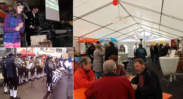 Heute um 11 Uhr spielte der Eberbacher Fanfarenzug zur Eröffnung (Bild links unten). Bis 17 Uhr gab es im Festzelt am Getränkemarkt eine Hausmesse mit Wein-, Sekt- und Bierproben verschiedener Erzeuger.