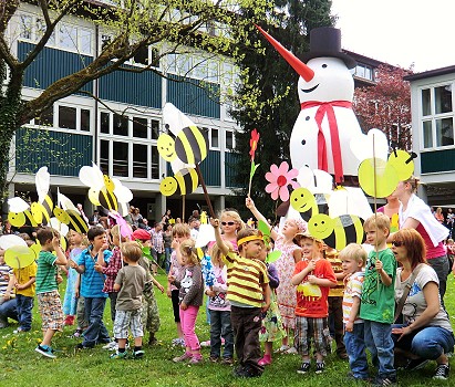 Im Innenhof der Berufsschule wird ein kleines Programm aufgeführt. Gemeinsam werden die traditionellen Sommertagslieder gesungen, musikalisch unterstützt von der katholischen Pfarrkapelle. Aufgelockert wird diese Veranstaltung durch kleine Vorträge, einen Tanz und natürlich dem Höhepunkt: Die symbolische Vertreibung des Winters durch das Verbrennen des Schneemanns.
