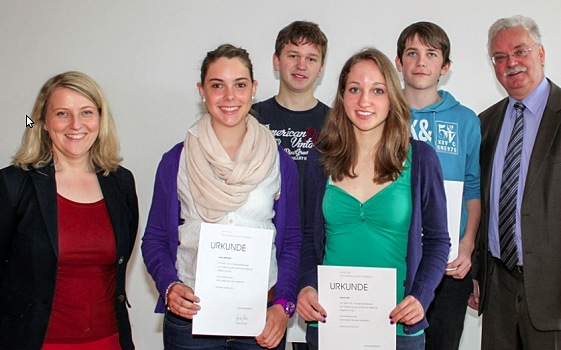 Teilnahme beim Schülerwettbewerb des Landtags von Baden-Württemberg Die erfolgreichen Schülerinnen und Schüler aus der neunten Klasse zusammen mit ihrer Gemeinschaftskundelehrerin Gabriele Sellner und Schulleiter Helmut Schultz. (Foto: privat)(bro) (pm) "Komm heraus - mach mit" lautet das Motto des jährlichen Schülerwettbewerbs des Landtags von Baden-Württemberg. Lena Reichert, Laura Link, Simon Dalpke und Jonas Wörner aus der neunten Jahrgangsstufe des Hohenstaufen-Gymnasiums folgten diesem Aufruf und reichten Arbeiten zum Thema "Nachhaltiger Konsum" ein. Letzte Woche konnten sie sich gemeinsam mit ihrer Gemeinschaftskundelehrerin Gabriele Sellner und Schulleiter Helmut Schultz über die Verleihung von Anerkennungsurkunden freuen.
