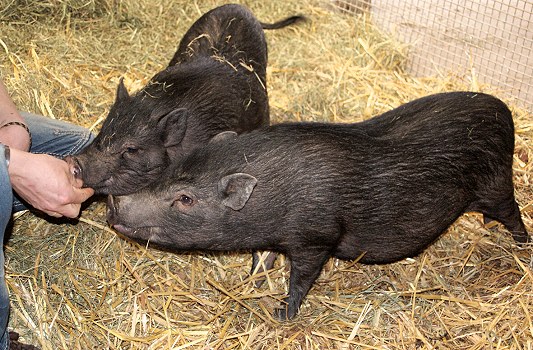 Die beiden sind etwa ein Jahre alt und fühlen sich in ihrem neuen Zuhause bereits „sauwohl“. „Mini“ sind die Schweine in der Tat: So bringen sie mit ihren jeweils rund 30 Kilogramm nur etwa ein Zehntel des Gewichts auf die Waage, das ihre großen Verwandten auf der Kinder- und Jugendfarm - die schwäbisch-hällischen Schweine „Rosa“ und „Berta“ - zu bieten haben. Über die Name der beiden Neuen wird im Übrigen noch diskutiert.