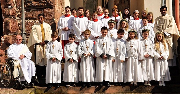 Festgottesdienst bei strahlendem Sonnenschein (Foto: privat)(bro) (hn) Bei strahlendem Sonnenschein durften elf Hirschhorner Kommunionkinder mit ihren Familien den Weißen Sonntag feiern.