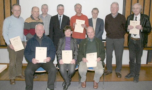 Höhepunkt der Jahreshauptversammlung des Heimat- und Geschichtsvereins war die Ehrung der Vereinsgründer vor 25 Jahren. Es wurden insgesamt 16 Personen mit Urkunden ausgezeichnet sowie als korporative Mitglieder die Stadt Beerfelden, die Gemeinden Rothenberg und Sensbachtal ebenso die Evangelische Kirchengemeinde Beerfelden. Für den nachfolgenden Beitritt bis 1988 empfingen weitere 20 Mitglieder die Ehrenurkunde aus den Händen des Vorsitzenden sowie Volksbank Odenwald, CDU Oberzent, Verkehrs- und Verschönerungsverein Gammelsbach und Evangelische Kirchengemeinde Schöllenbach-Bullau für ihre korporative Mitgliedschaft.