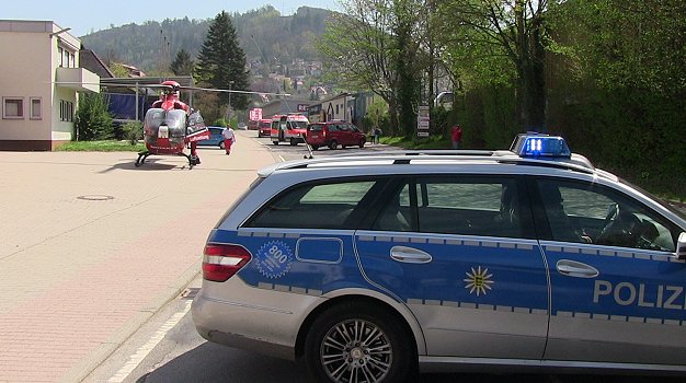 Wegen eines medizinischen Notfalls im REWE-Markt landete ein Hubschrauber der Deutschen Rettungsflugwacht direkt neben der Straße vor dem Feuerwehrgerätehaus. Der Patient wurde vom DRK zum Helikopter gebracht und dort an Bord genommen. Für die Landung und den Start des Hubschraubers wurde die Güterbahnhofstraße kurzzeitig voll gesperrt.