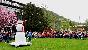 Mit musikalischer Begleitung durch den Eberbacher Fanfarenzug führte der Zugweg bei eher frischen Temperaturen und bedecktem Himmel vom Neuen Markt durch die Hauptstraße und die Kellereistraße auf die Friedrich-Ebert-Straße und weiter zum Berufsschulzentrum. Dort gab es unter Moderation des BHV-Vorsitzenden Jens Müller ein Programm aus Frühlingsliedern (begleitet von der katholischen Pfarrkapelle), Gedichtvorträgen von Xenia Walter und Lukas Müller und einem Zwergentanz der "Kuckuckseier" von der Karnevalgesellschaft Kuckuck.
