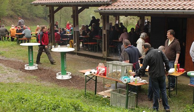 Wenn auch am 1. Mai das Wetter nicht optimal war, waren die Feste in der Region, die sich als Wanderziel oder Zwischenstation auf den Maitouren anboten, gut besucht. In Eberbach hatte unter anderem die SPD in den Gretengrund eingeladen (unser Bild), die Reservistenkameradschaft auf den Breitenstein, die SVE-Jugend in die Au und die HGE an das Handballerheim. In Igelsbach gab es Unterhaltung und Bewirtung an der Sängerhalle, in Zwingenberg lud der Angelsportverein an den Neckar ein, und in Gammelsbach wurde auf der alten Wiese gefeiert.