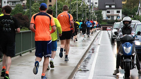 Doppelsieg für TF Feuerbach - Timo Bracht mit neuem Streckenrekord Halbmarathonläufer auf der Neckarbrücke. (Foto: Hubert Richter)Mehr Bilder (Klicken zum Vergrößern):