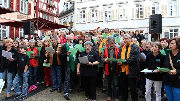 Am Sonntag wurde es kühl und nass Frühlingsliedersingen mit "Right Now!" und "La-Mi-Choeur" am Freitag auf dem Alten Markt.(Foto: Claudia Richter)Mehr Bilder (Klicken zum Vergrößern):