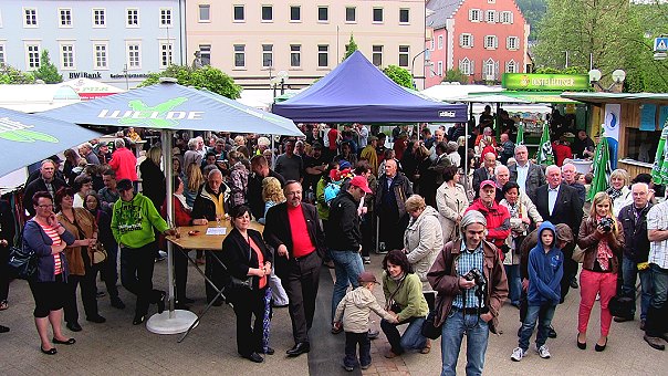 Das dreitägige Fest auf den Plätzen der Innenstadt war am Freitagabend eröffnet worden (wir berichteten). Am gestrigen Samstag blieb das Wetter noch weitgehend trocken und relativ warm. Am Nachmittag fand der traditionelle Kinderflohmarkt statt, außerdem gab es Unterhaltung mit dem Nachwuchsorchester "Picobello" des Akkordeonorchesters Eberbach, dem Jongleur "Jeremy" und den jazzenden "Blues Station Ramblers" auf dem Alten Markt, der Nachwuchsband "Astenics" und DJ Cha Cha auf dem Lindenplatz. Auf dem Leopoldsplatz sorgten am Abend "The Colour Red" und auf dem Neuen Markt "The Rockefellers" für Stimmung. Unter dem Motto "Come together" musizierten erstmals in der nahezu voll besetzten Mehrzweckhalle Schülerinnen und Schüler in verschiedenen Ensembles gemeinsam.