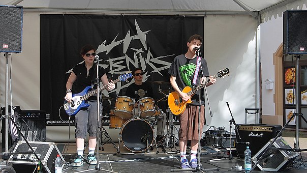Das dreitägige Fest auf den Plätzen der Innenstadt war am Freitagabend eröffnet worden (wir berichteten). Am gestrigen Samstag blieb das Wetter noch weitgehend trocken und relativ warm. Am Nachmittag fand der traditionelle Kinderflohmarkt statt, außerdem gab es Unterhaltung mit dem Nachwuchsorchester "Picobello" des Akkordeonorchesters Eberbach, dem Jongleur "Jeremy" und den jazzenden "Blues Station Ramblers" auf dem Alten Markt, der Nachwuchsband "Astenics" und DJ Cha Cha auf dem Lindenplatz. Auf dem Leopoldsplatz sorgten am Abend "The Colour Red" und auf dem Neuen Markt "The Rockefellers" für Stimmung. Unter dem Motto "Come together" musizierten erstmals in der nahezu voll besetzten Mehrzweckhalle Schülerinnen und Schüler in verschiedenen Ensembles gemeinsam.