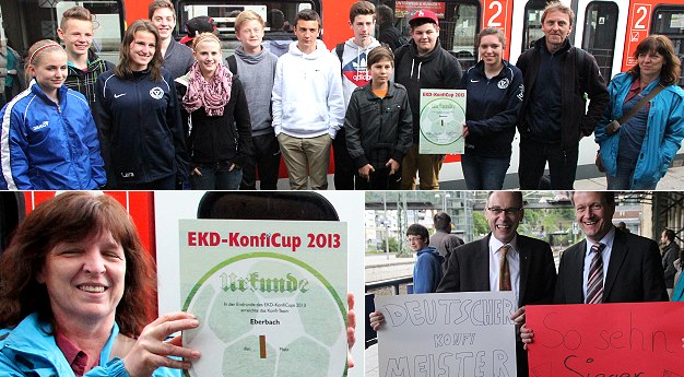 Thieme-Team kickte in Köln am besten (Foto: Hubert Richter)(hr) Das Fußballteam der diesjährigen Konfirmanden aus Eberbach nahm gestern in Köln an der Endausscheidung zum "Konfi-Cup" der Evangelischen Kirche in Deutschland (EKD) teil und setzte sich in der Konkurrenz der neun besten Konfi-Teams aus ganz Deutschland als Sieger durch.
