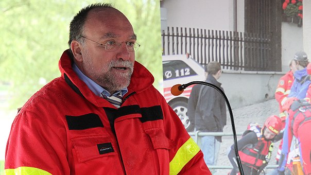 Jubiläumsfeier des Landesverbands in Eberbach - Tag der offenen Tür an der Station Heinz Thöne, Vorsitzender der DLRG Eberbach und Vizepräsident des DLRG-Landesverbands Baden, bei der Begrüßung der Gäste. (Foto: Hubert Richter)Mehr Bilder (Klicken zum Vergrößern):