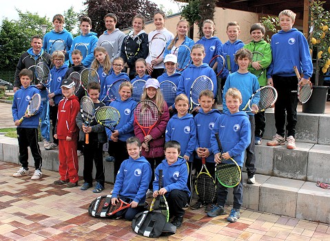 Auch der Spaß kam nicht zu kurz Die Tennisjugend mit ihren Trainern. (Foto: privat)(bro) (js) Trotz widriger Wetterbedingungen fand sich die Tennisjugend in der vergangenen Woche auf der Clubanlage in der Au ein, um unter der Leitung von Matthias Voigt und seinem Trainerteam, Sven-Erik Neimeier, Dominik Palm und Jean Eric Rothenberger weiter an Technik, Kondition und Koordination zu feilen.