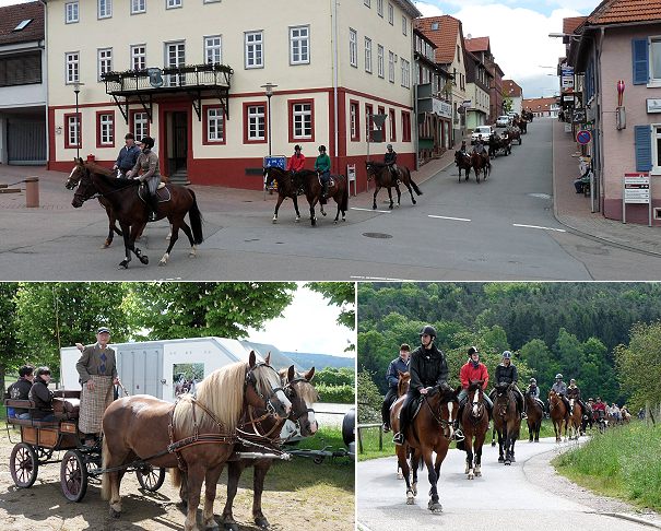 Mit Pferden einmal rund um Beerfelden (Fotos: privat)(bro) (rau) Das Wetter war nach tagelangem Regen ideal. So fanden sich wieder Reiter und Kutschenfahrer aller Stile und Pferderassen an der Reithalle in der Stried ein, um die Natur gemeinsam zu erleben, wenngleich der Tross etwas kleiner ausfiel als in den Vorjahren.