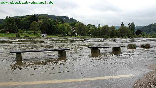 Der Pegelhöchststand lag in Eberbach am frühen Abend bei gut 7,30 Metern. Seitdem fällt der Wasserstand allmählich. Damit blieb das Hochwasser diesmal nur knapp unter dem Höchststand im März 2002 und ist damit das stärkste Hochwasser seit gut elf Jahren.