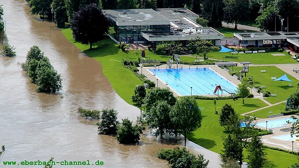 Der Pegelhöchststand lag in Eberbach am frühen Abend bei gut 7,30 Metern. Seitdem fällt der Wasserstand allmählich. Damit blieb das Hochwasser diesmal nur knapp unter dem Höchststand im März 2002 und ist damit das stärkste Hochwasser seit gut elf Jahren.