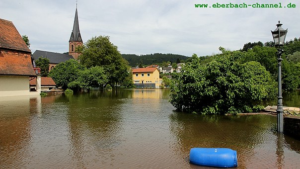 In der Eberbacher Innenstadt berichtete die Feuerwehr, dass immer mehr Personen die Absperrungen missachteten und sogar Kinder in den überfluteten Straßen im Wasser spielen oder mit Fahrrädern ins Hochwasser fahren. Aufgrund der großen Gefahren wegen des unsicheren Untergrunds und der unberechenbaren Strömungen werden die Besucher Eberbachs dringend gebeten, den Altstadtbereich zu meiden und sich unbedingt an die Absperrungen zu halten.