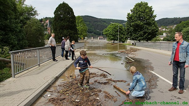 In der Eberbacher Innenstadt berichtete die Feuerwehr, dass immer mehr Personen die Absperrungen missachteten und sogar Kinder in den überfluteten Straßen im Wasser spielen oder mit Fahrrädern ins Hochwasser fahren. Aufgrund der großen Gefahren wegen des unsicheren Untergrunds und der unberechenbaren Strömungen werden die Besucher Eberbachs dringend gebeten, den Altstadtbereich zu meiden und sich unbedingt an die Absperrungen zu halten.