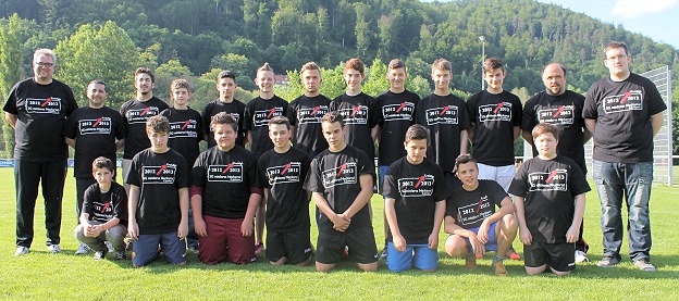C-Junioren feiern Aufstieg in die Kreisliga (Foto: privat)(bro) (twä) Am Mittwoch, 5. Juni, feierten die C-Junioren der Spielgemeinschaft FC Hirschhorn/SV Eberbach/SV Moosbrunn den Aufstieg in die Kreisliga Heidelberg.