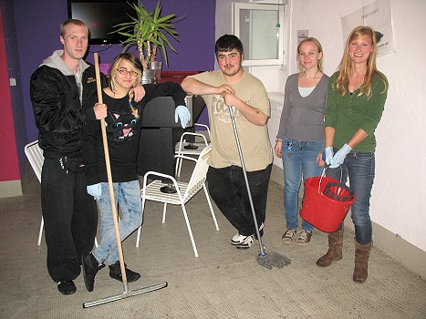 Der Einsatz lohnte sich, denn 10 cm Überschwemmung brachte das Hochwasser einen Tag später dem leer geräumten Jugendtreff. Dank des Einsatzes von Feuerwehr und Schul-Hausmeister konnte das Wasser aus dem Keller abgepumpt werden. Somit erwartete die Mitarbeiter am Montag zwar ein leerer und noch ziemlich nasser Jugendtreff, aber kein „Hochwasser“. Erneut boten einige Jugendliche ihre Hilfe an und halfen das restliche Wasser zu entfernen, putzten und unterstützten beim Auf- und Einräumen, so dass der Jugendtreff sich nun wieder trocken und gemütlich präsentiert. Als Dankeschön gab es für die jugendlichen Helfer Pizza und Getränke.