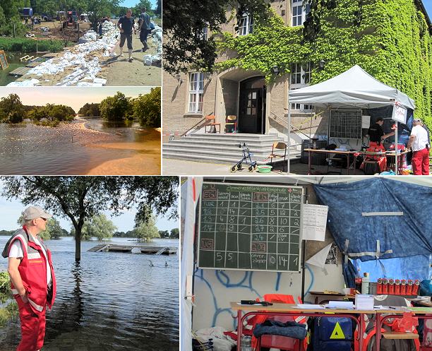 Helfer bringen bewegende Eindrücke mit zurück (Fotos: privat)(bro) (csch) Als am Montag, 10. Juni der Einsatzbefehl eintraf, war Eile geboten. Helfer aus dem gesamten Landesverband Hessen des Deutschen Roten Kreuzes waren angefordert worden, um in der Hansestadt Havelberg (LK Stendal, Sachsen-Anhalt) eine zentrale Betreuungs- und Versorgungsstation für von der Flutkatastrophe Betroffene und Helfer einzurichten. Als am Dienstag, 11. Juni, über den Kreisverband des DRK in Heppenheim eine Abfrage nach Unterstützung bzw. Ersatz der bereits im Hochwassergebiet sich befindenden DRK Einsatzkräfte aus dem Kreis Bergstraße eintraf, meldete der Ortsverband Hirschhorn bereits nach zweieinhalb Stunden drei Helfer mit den gesuchten Qualifikationen (Betreuung/Verpflegung), die abrufbereit waren.