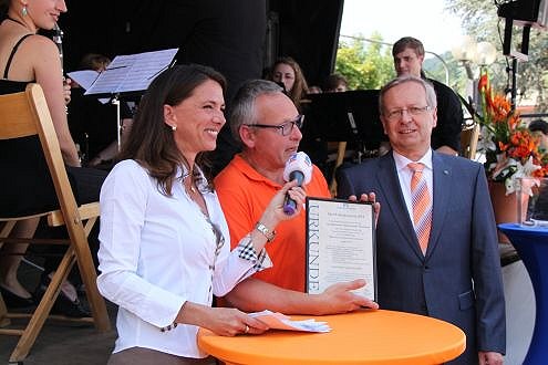 Informationen und Unterhaltung auf dem Leopoldsplatz - Spenden für gemeinnützige Organisationen Übergabe Musikförderpreis für das Ensemble der Musikschule. (Foto: Renate Dengel)Mehr Bilder (Klicken zum Vergrößern):