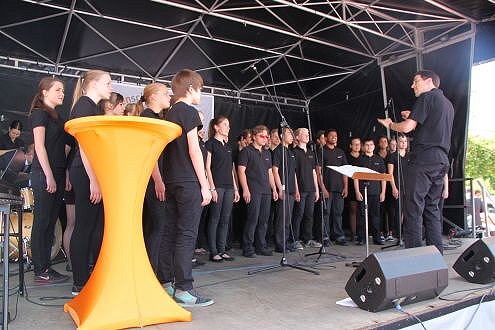 Informationen und Unterhaltung auf dem Leopoldsplatz - Spenden für gemeinnützige Organisationen Jugendchor "Voices of Heaven". (Foto: Renate Dengel)Mehr Bilder (Klicken zum Vergrößern):