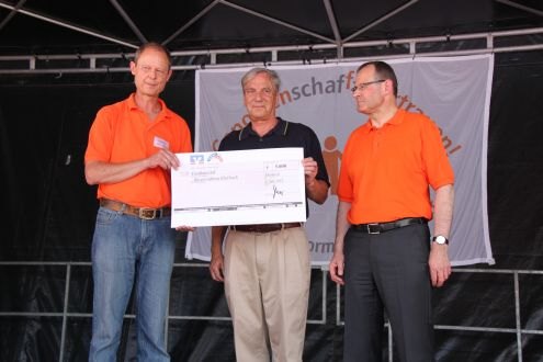 Informationen und Unterhaltung auf dem Leopoldsplatz - Spenden für gemeinnützige Organisationen Scheckübergabe an die Bürgerstiftung Eberbach. (Foto: Renate Dengel)Mehr Bilder (Klicken zum Vergrößern):