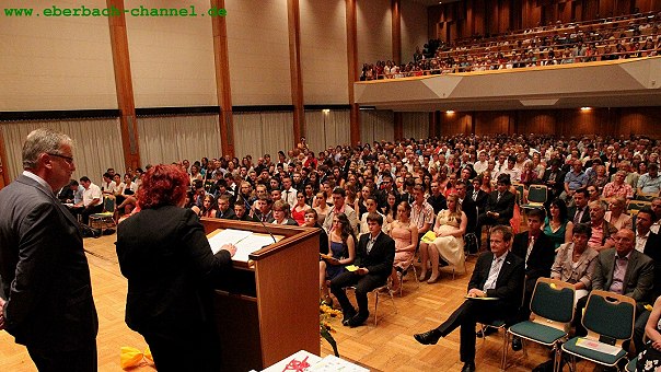 Zum Startbild (hr) Bei der Abschlussfeier der Realschule gestern Abend in der Eberbacher Stadthalle erhielten die ehemaligen Zehntklässler ihre Zeugnisse. Die - ausnahmslos weiblichen - Jahrgangsbesten wurden mit Preisen ausgezeichnet.