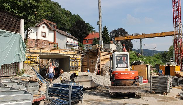 Eisenbahnüberführung Neckarhälde und Bebauungspläne vertagt Die Baustelle an der Eisenbahnüberführung Neckarhälde. (Foto: Hubert Richter)(hr) Für die derzeit laufende Erneuerung der Bahnüberführung Neckarhälde sollte der Gemeinderat am vergangenen Donnerstag die Planung für den Straßenbau freigeben. Wegen Diskussionen über den geplanten Gehweg wurde der Tagesordnungspunkt aber ohne Beschluss vertagt.