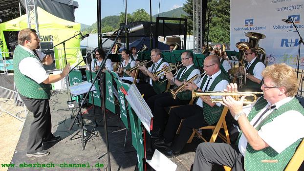 An die 2.000 Teilnehmer der Tour waren am Vormittag in Weinheim gestartet. Trotz sommerlicher Hitze mit Temperaturen von mehr als 35 Grad kamen die meisten Radler nach einer letzten gemeinsamen Pause in Mossbrunn gegen Abend wohlbehalten in Eberbach an. Mit Applaus wurden sie am Radweg im Sportgebiet in der Au empfangen. Dort warteten auf sie zunächst Erfrischungen in Form einer Wasserspritzanlage der Freiwilligen Feuerwehr und kühlenden Wasserschwämmen. Frischmachen konnten sich die Sportler auch in einem eigens zum Duschen aufgestellten "Showertruck". Zusammen mit den Tourveranstaltern des Südwestrundfunks und der EnBW hatten die Eberbacher unter Federführung des Kulturamts ein großes Fest vorbereitet. Am Nachmittag spielte die Musikkapelle "Kleiner Odenwald" aus Allemühl, und gegen Abend zog Jongleur "Jeremy" Klein und Groß in seinen Bann. Die eigentliche Etappenparty startete um 19 Uhr mit den Bands "Schlagerfeld" und der "Spider Murphy Gang" auf der großen Showbühne, vor der ein riesiger runder Pavillon aufgebaut war. Um 22 Uhr war schon wieder Schluss, nachdem die Stars aus Bayern mit Hits wie "Skandal im Sperrbezirk" für ausgelassene Stimmung gesorgt hatten. Denn die Radler brauchten ihren Schlaf für die nächsten Etappen, die an insgesamt sieben Tagen von Weinheim bis Stockach am Bodensee führen. Heute Morgen machten sich die Radler nach dem Frühstück auf in Richtung Bad Mergentheim. Übernachtet hatten viele von ihnen im Matratzenlager der Hohenstaufen-Sporthalle, wo 500 Schlafplätze vorbereitet waren, oder in Zelten auf dem Rasendreieck neben dem Fußballstadion. Einige Teilnehmer waren auch in umliegenden Hotels untergebracht, wofür Shuttlebusse eingesetzt waren.