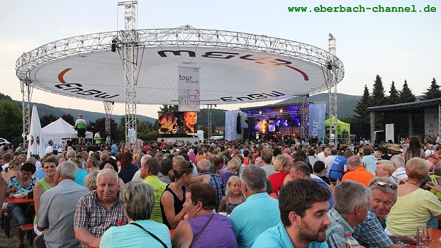 An die 2.000 Teilnehmer der Tour waren am Vormittag in Weinheim gestartet. Trotz sommerlicher Hitze mit Temperaturen von mehr als 35 Grad kamen die meisten Radler nach einer letzten gemeinsamen Pause in Mossbrunn gegen Abend wohlbehalten in Eberbach an. Mit Applaus wurden sie am Radweg im Sportgebiet in der Au empfangen. Dort warteten auf sie zunächst Erfrischungen in Form einer Wasserspritzanlage der Freiwilligen Feuerwehr und kühlenden Wasserschwämmen. Frischmachen konnten sich die Sportler auch in einem eigens zum Duschen aufgestellten "Showertruck". Zusammen mit den Tourveranstaltern des Südwestrundfunks und der EnBW hatten die Eberbacher unter Federführung des Kulturamts ein großes Fest vorbereitet. Am Nachmittag spielte die Musikkapelle "Kleiner Odenwald" aus Allemühl, und gegen Abend zog Jongleur "Jeremy" Klein und Groß in seinen Bann. Die eigentliche Etappenparty startete um 19 Uhr mit den Bands "Schlagerfeld" und der "Spider Murphy Gang" auf der großen Showbühne, vor der ein riesiger runder Pavillon aufgebaut war. Um 22 Uhr war schon wieder Schluss, nachdem die Stars aus Bayern mit Hits wie "Skandal im Sperrbezirk" für ausgelassene Stimmung gesorgt hatten. Denn die Radler brauchten ihren Schlaf für die nächsten Etappen, die an insgesamt sieben Tagen von Weinheim bis Stockach am Bodensee führen. Heute Morgen machten sich die Radler nach dem Frühstück auf in Richtung Bad Mergentheim. Übernachtet hatten viele von ihnen im Matratzenlager der Hohenstaufen-Sporthalle, wo 500 Schlafplätze vorbereitet waren, oder in Zelten auf dem Rasendreieck neben dem Fußballstadion. Einige Teilnehmer waren auch in umliegenden Hotels untergebracht, wofür Shuttlebusse eingesetzt waren.