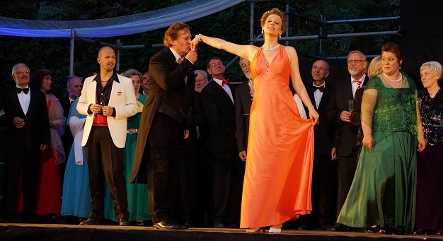 Großes Theater brachte Rekordauslastung auf dem Schloss Die Operette „Die Fledermaus“ war eine der beiden Hauptproduktionen in diesem Jahr. (Foto: Schlossfestspiele)(hr) (sfz) Insgesamt 5.535 Besucherinnen und Besucher haben die zehn Aufführungen und die zwei Generalproben der diesjährigen Spielzeit der Schlossfestspiele Zwingenberg gesehen. Das entspricht einer Rekordauslastung von 75,56 Prozent - noch einmal drei Prozent mehr als 2012 und 21 Prozent mehr als 2011, wo die Schlossfestspiele allerdings auch mit einer extrem verregneten Spielzeit zu kämpfen hatten.