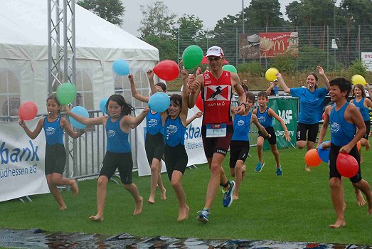 Gut 70 Sekunden Rückstand handelte sich Timo Bracht auf der 1,5 Kilometer langen Schwimmstrecke durch den Hemsbacher Wiesensee ein. Die 40 Radkilometer im Anschluss wurden dann zur One-Man-Show: Mit einer durchschnittlichen Leistung von 320 Watt jagte Bracht durch die Straßen. „Auf dem Rad bin ich im Moment richtig fit. Ich konnte von Minute zu Minute stärker fahren. Dass ich mich schon auf dem Rad absetzen konnte war wichtig“, blickt Bracht auf sein Rennen zurück. „Gestern saß ich noch 170 Kilometer im Sattel und war Schwimmen, der Wettkampf lag mitten in der harten Hawaii-Vorbereitung. Morgen geht es dann genauso weiter.“ Eine kurze Verschnaufpause ist erst für die Tage vor dem nächsten Rennen, der Challenge Walchsee-Kaiserwinkl, geplant.