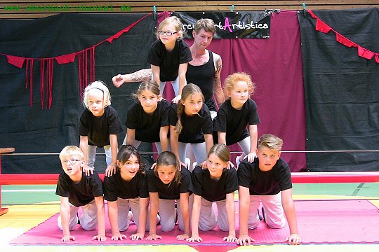 Seiltänzer und -tänzerinnen, Jongleure, Akrobaten in der Luft und am Boden, Gewichtheber und Zauberer zeigten ihr Können, und auch die Clowns fehlten bei der Veranstaltung nicht. Die Show mit viel Musik, sportlichen Leistungen und schauspielerischem Einsatz haben die jungen Artisten selbst zusammengestellt. In ihrer Begrüßung lobte die Leiterin die teilnehmenden Kinder für deren Geduld und Ausdauer während des Trainings.