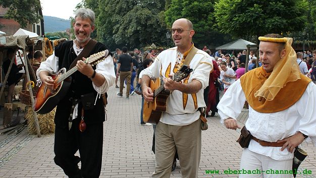 Schon am Samstagmorgen begann das bunte Spektakel mit dem Einzug der Fanfarenzüge der Stadt Eberbach, der Goldstadt Pforzheim und den Fahnenschwingern der Ritter zu Hirschhorn. Diese geleiteten Bürger, Ritter, Sarazenen, Kaufleute, Händler, Gaukler, Tänzer, Musikanten, Zauberer, Seher, Bettler und Stelzenläufer aus der Altstadt und aus dem Handwerkerdorf auf dem Château-Landon-Platz und trafen sich zur Eröffnung des Ritterfestes auf dem Rathausvorplatz.