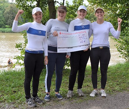 Lena Reichert und ihre Partnerin Lea Richter (Heidelberg) legten viermal am Siegersteg an. Sie gewannen an beiden Renntagen ihre Rennen im Juniorinnen-Doppelzweier (15/16 Jahre). Dabei waren sie an beiden Tagen schneller als die Boote aus Esslingen, Heilbronn und Breisach. Gemeinsam mit Inez Thomson, Lisa Baumbusch und Steuerfrau Emily Scheuenpflug präsentierten sie sich auch erfolgreich im Juniorinnen-Doppelvierer. Gegen zwei Renngemeinschaften aus Ulm/Nürtingen und /Breisach/Esslingen/Heilbronn gab es kein Halten für den RGE-Express. Zwei Siege mit jeweils einer guten Bootslänge Vorsprung wurden es in dieser Bootsklasse. Schnell unterwegs war auch Sofie Weber (AK 17/18 Jahre). Im Juniorinnen-Einer ließ sie ihren Gegnerinnen aus Karlsruhe, Friedrichshafen und Esslingen ließ sie an beiden Tagen keinen Zweifel darüber aufkommen, dass sie in dieser Altersklasse am schnellsten rudert. Zu diesen beiden Siegen im Einer kam noch ein weiterer Sieg im Juniorinnen Doppelzweier dazu. Sofie Weber und Carolin Kropmaier holten mit einem Start-Ziel-Sieg gegen die Boote aus Esslingen und Heidelberg ein weiteres Mal Edelmetall für die RGE. Ein besonderes Rennen bestritten die beiden im Frauen-Doppelvierer mit zwei Ruderpartnerinnen aus Mannheim: Hier reichte es zwar nicht zum Sieg, aber da es ein sogenanntes Preisgeldrennen war, erhielt der Vierer am Siegersteg einen Scheck über 100 Euro für seine Platzierung. Carolin Kropmaier erruderte auch im Leichtgewichts-Einer einen ungefährdeten Sieg gegen die Ruderinnen aus Marbach und Stuttgart.