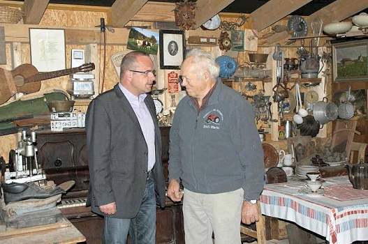 Nachdem es endgültig aufgehört hatte zu regnen, begann auch der Ansturm der Besucher aus der näheren und weiteren Umgebung. Die einen zogen es vor, erst einmal ein kräftiges Mittagsmahl einzunehmen, die anderen zog es in das Bauernmuseum, das von Erich Martin reichlich bestückt worden war. Zu sehen gab es alles, was früher in der Landwirtschaft verwendet wurde. Angefangen von einem handbetriebenen Haferquetscher, einem Maiskörnerentferner, landwirtschaftliches Handwerkzeug und Hilfsgeräte aller Arten. Eine ganze bäuerliche Küchenausstattung war zu bewundern, außerdem Nähmaschinen vieler Fabrikate, Handwagen, Leiterwagen, Schubkarren und noch vieles mehr. Auch Werkzeuge für die Steinbearbeitung, ein Schleifstein aus Sandstein, Wasserpumpen und Motorsägen aus der Anfangszeit der Motorisierung, alte Schreibmaschinen, Schreibtische und sogar ein Klavier konnten bestaunt werden.
