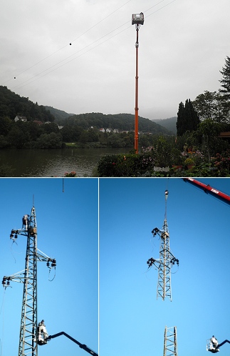 Abbauarbeiten der Freileitung über dem Neckar planmäßig abgeschlossen (Fotos: privat)(bro) (swe/im/kt) Am Donnerstag, 26. September, wurde im Auftrag der Stadtwerke Eberbach die Freileitung über dem Neckar zwischen Gretengrund und Pleutersbach durch die Firma GA abgebaut.