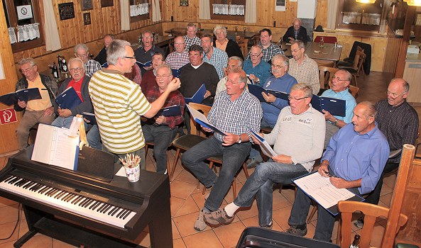 Die Proben für das Jubiläumskonzert sind in vollem Gange (Foto: privat)(bro) (mr) Der Männergesangverein Concordia feiert dieses Jahr sein 125-jähriges Bestehen. Geschäftiges Treiben herrscht deshalb in der Concordia Hütte. Hier wird fleißig geprobt für das Konzert in der Stadthalle. Mit dabei sind die Freunde vom MGV Sängerlust Rockenau, die seit zwei Jahren zusammen mit der Concordia eine Chorgemeinschaft bilden.
