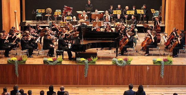 Ab 17 Uhr boten die jungen Musikerinnen und Musiker unter Leitung ihres Dirigenten Thomas Kalb ein Programm mit Werken von Chopin, Mozart (Jupiter-Sinfonie) und Erich Wolfgang Korngold. Solist am Klavier war István Koppányi. Am Abend zuvor hatte das Orchester bereits in Buchen ein Konzert mit gleichem Programm gespielt.