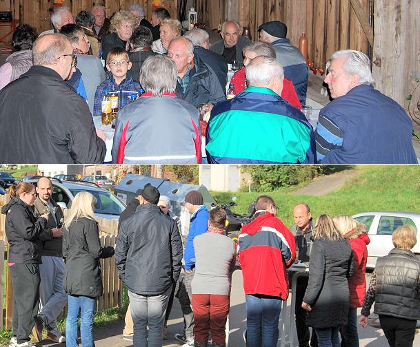 Es wurde dann nicht nur die stimmungsvoll geschmückte Scheune am Spielplatz in Schöllenbach genutzt, auch die Stehtische vor der Halle in der Sonne waren beliebt. Kaffee und Kuchen fanden regen Zuspruch.