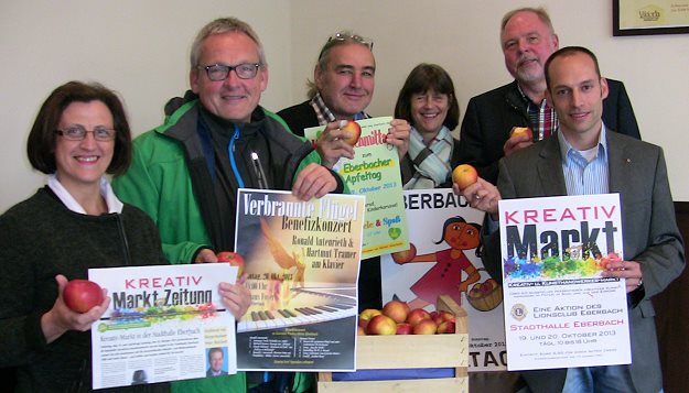 Zwei Tage Hochbetrieb in der Eberbacher Innenstadt Das Organisationsteam von EWG, Stadtverwaltung und Lionsclub stellte das Programm vor. (Foto: Claudia Richter)(cr) Ein Wochenende mit vielen verschiedenen Veranstaltungen, Attraktionen, Angeboten rund um den Apfel und verkaufsoffenem Sonntag steht in Eberbach vor der Tür. Zum 27. Mal wird in der Innenstadt am 19. und 20. Oktober der Eberbacher Apfeltag gefeiert.