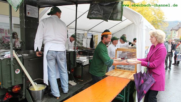Auf sonnigen Samstag folgte regnerischer Sonntag Feldküche der Reservistenkameradschaft in der Friedrichstraße. (Foto: Hubert Richter)Mehr Bilder (Klicken zum Vergrößern):